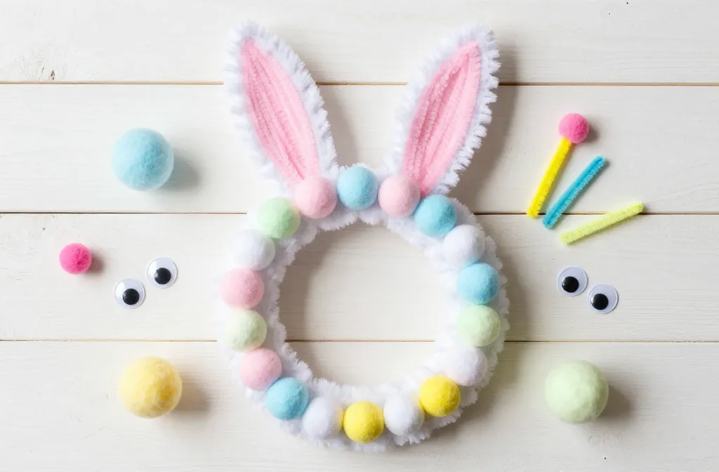 Trust me, this one is a crowd-pleaser and shockingly simple. You’ll grab a foam wreath form, some fluffy white cotton balls (or a white feather boa, if you’re feeling fancy), pipe cleaners, googly eyes, and a small pink pom-pom for the nose.