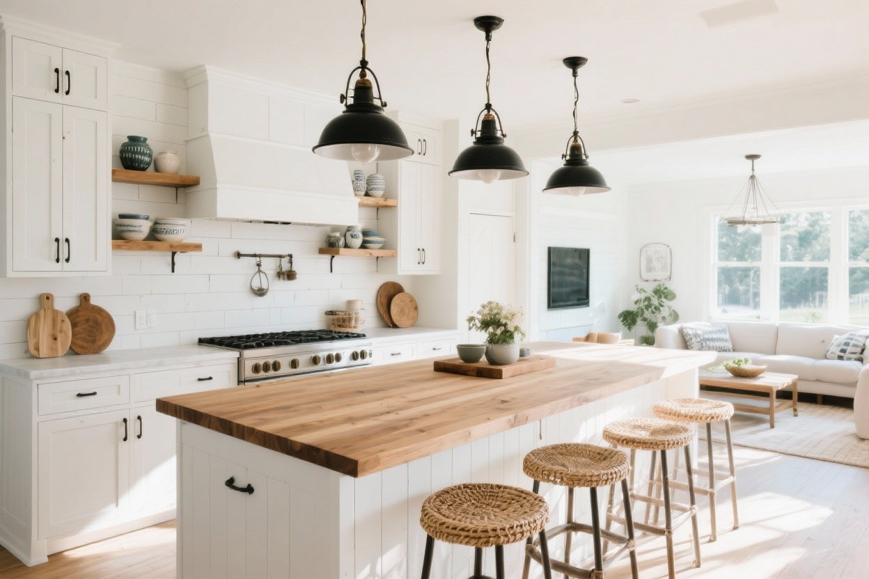 Modern farmhouse isn’t about copying a look—it’s about balancing warmth and simplicity so your open kitchen feels lived-in and beautiful. Start with one or two ideas (IMO, mixing materials and upgrading lighting give the biggest impact), then layer in texture and function. Your island will become the spot everyone gravitates to—be ready to host, even on a Tuesday.