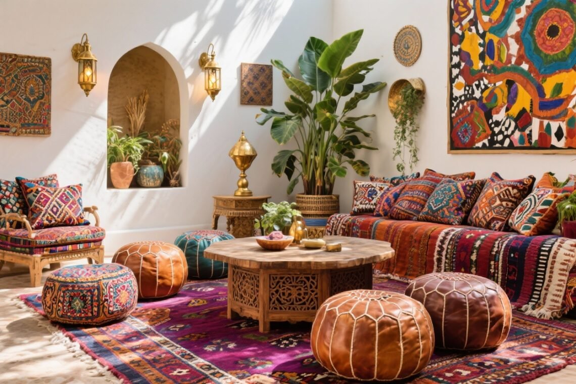 You want cozy-meets-glam, not museum-level minimalism. Enter: Moroccan poufs and ottomans. They bring color, texture, and instant seating without crowding the vibe. Let’s turn your living room into that deliciously layered, lived-in space you can’t stop showing off. Ready?