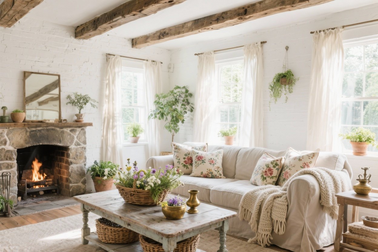 FYI: Warm tones play nicest with vintage wood and brass. If you’re repainting, choose eggshell or matte finishes for that velvety cottage glow.