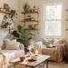 - Linen curtains: Off-white or flax, hung high and wide to elongate walls