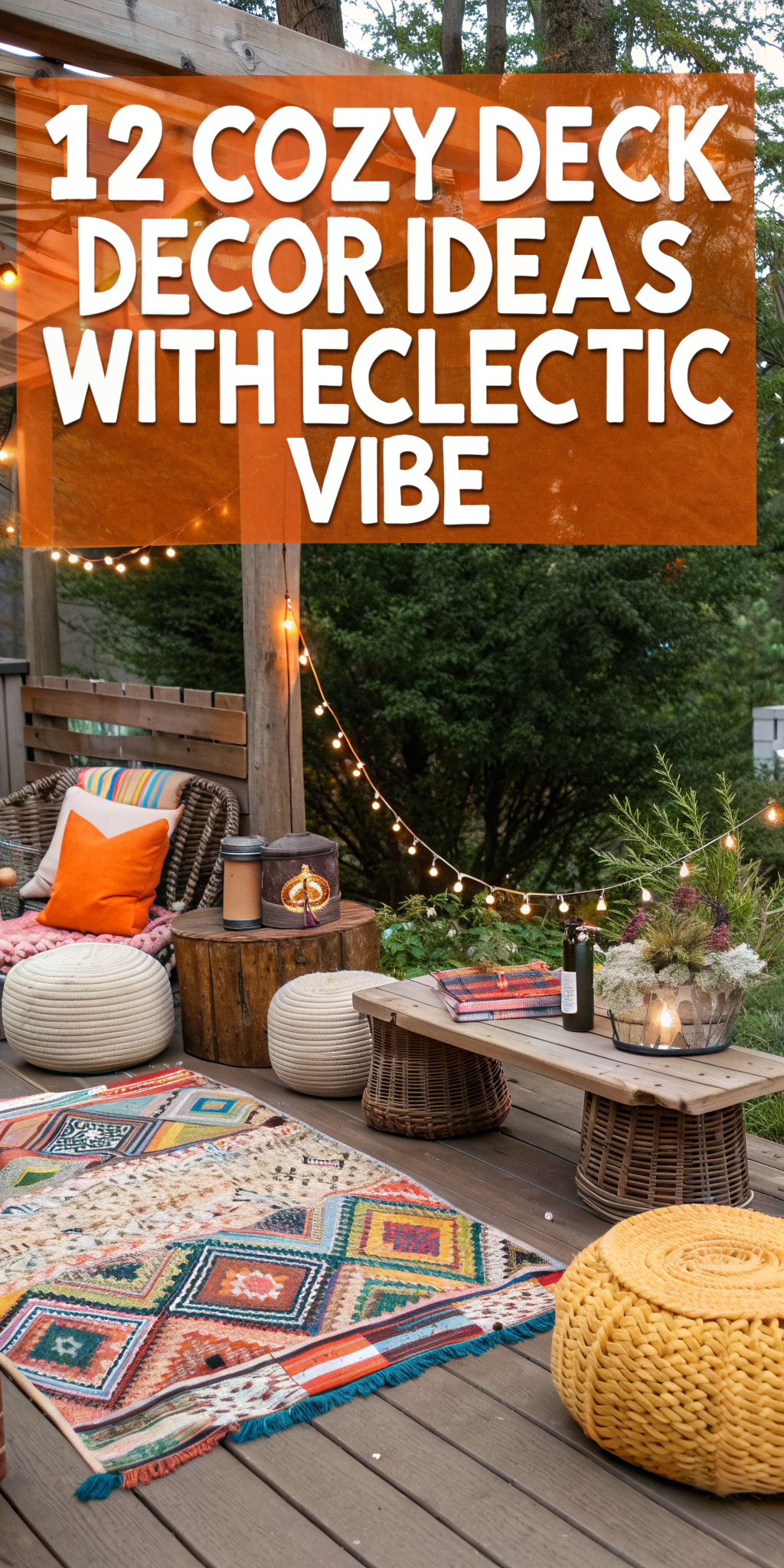 12 Cozy Deck Decor Ideas for an Eclectic Vibe with Lanterns and Woven Poufs