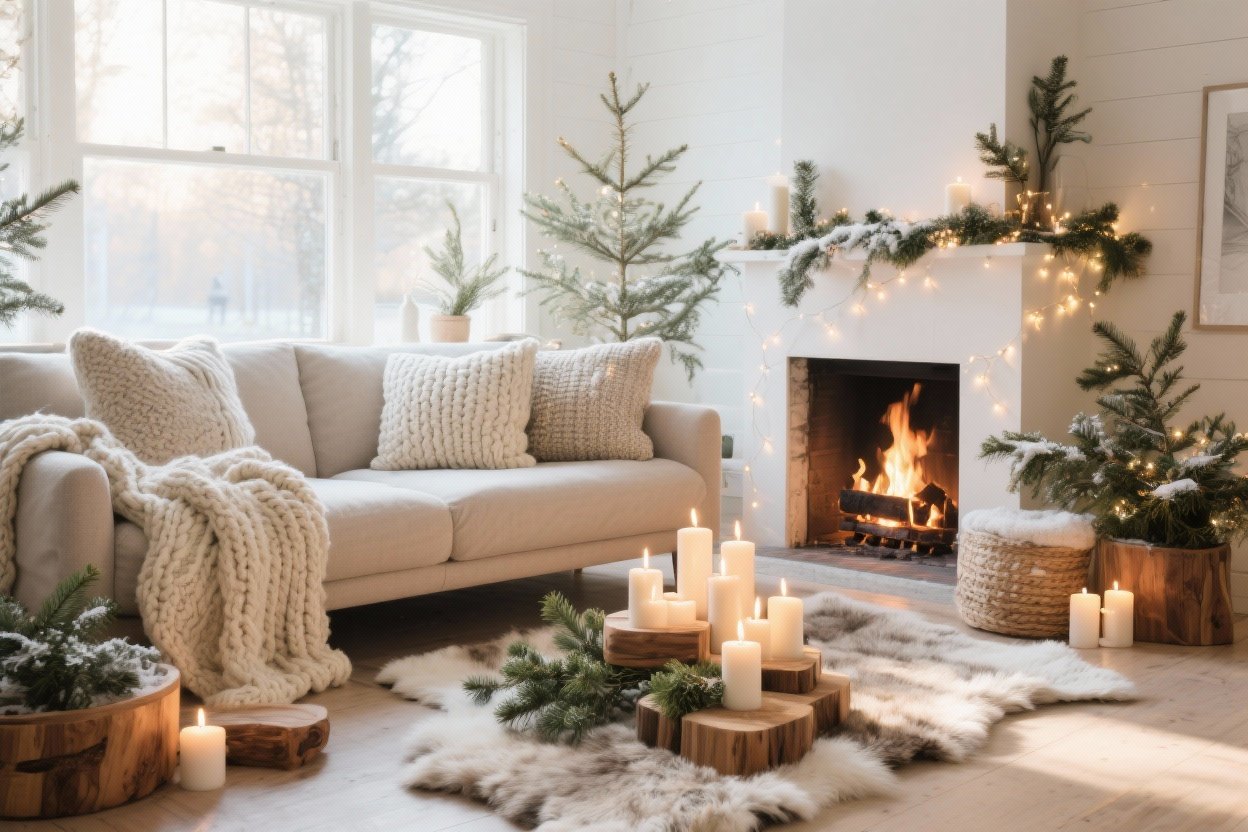 - Greenery: Use evergreen garlands (real or faux) on mantels and shelves for color and scent.