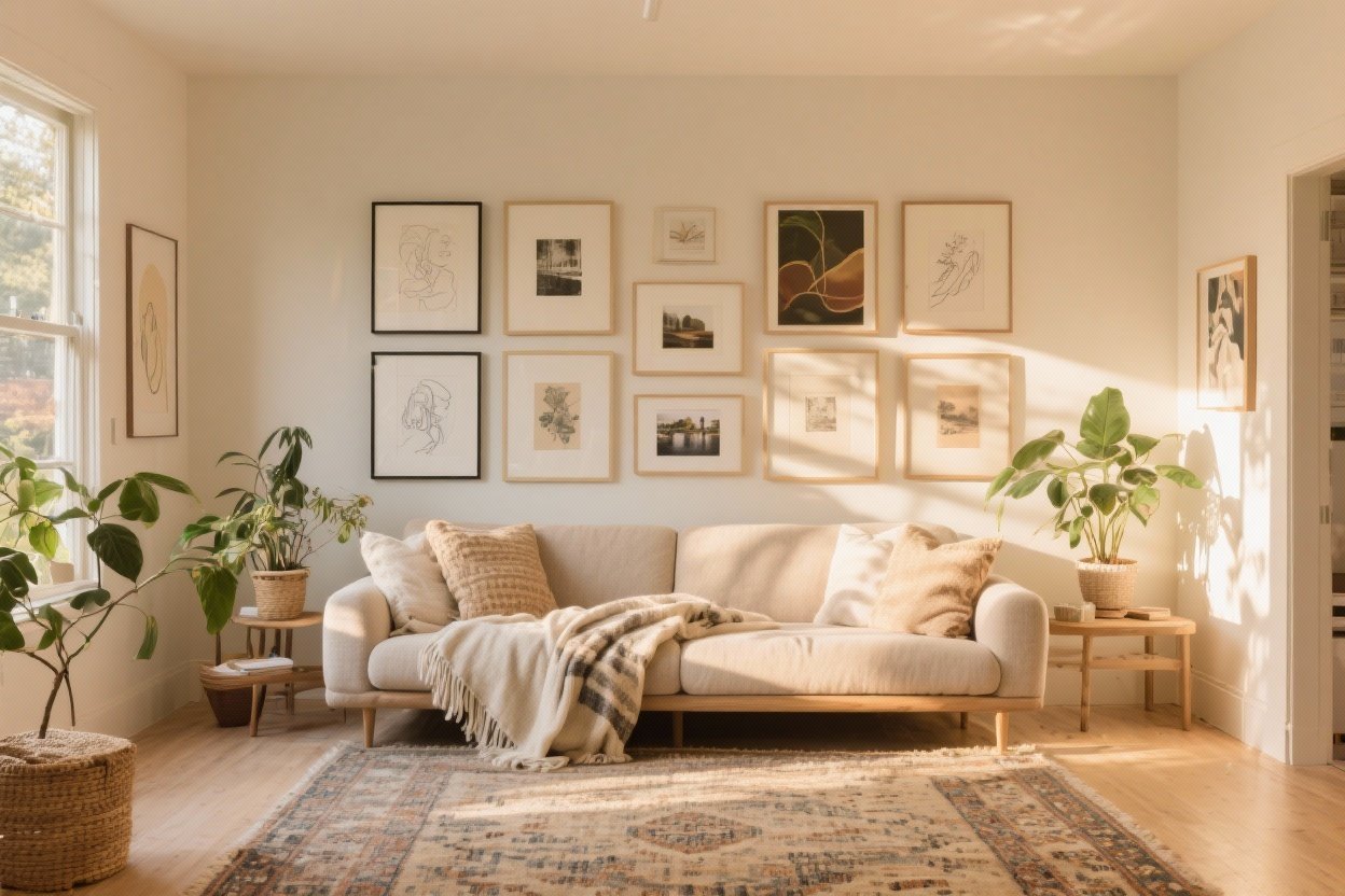 - Balance originals and prints: A few textured or hand-touched pieces add soul.