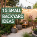 Can’t decide? Mix several ideas! Bamboo screens with hanging plants and string lights create depth and hide flaws from every angle.