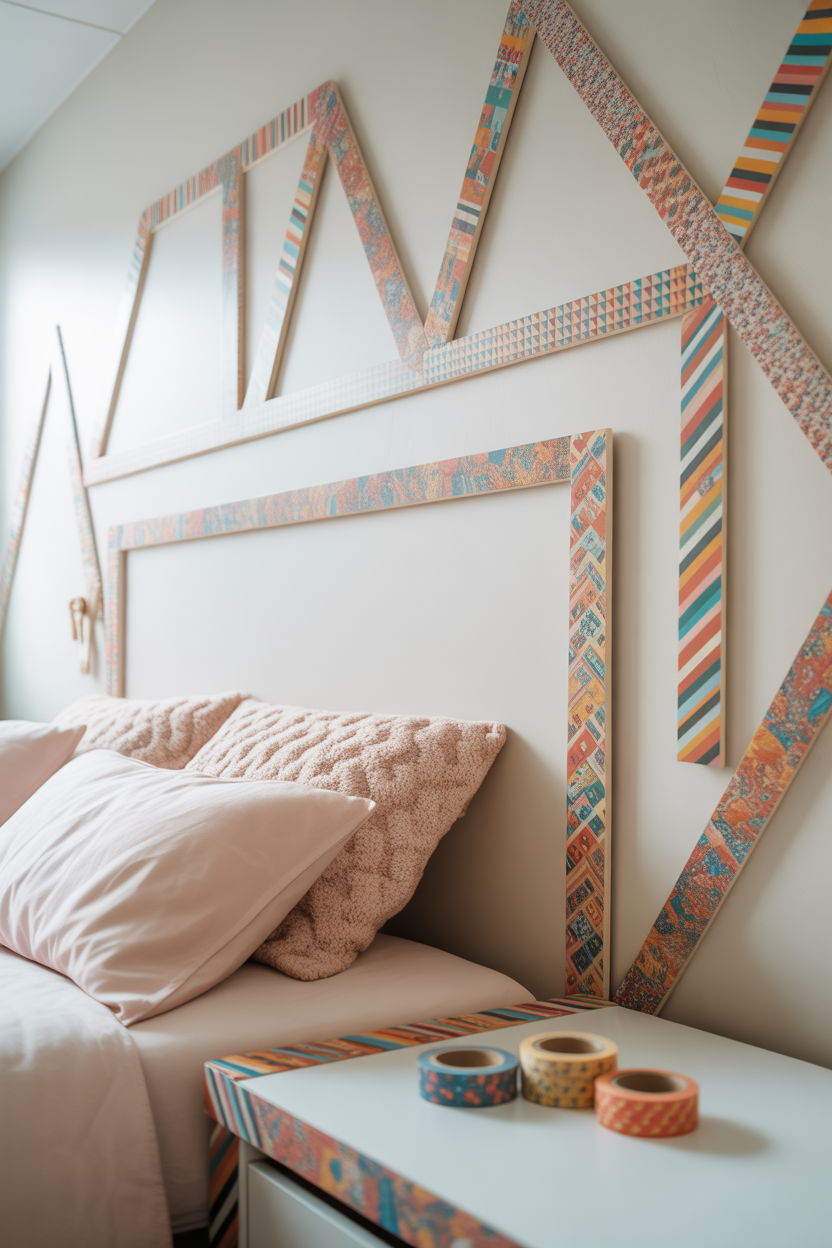 - Geometric wall designs: Create triangles, stripes, or a faux headboard.