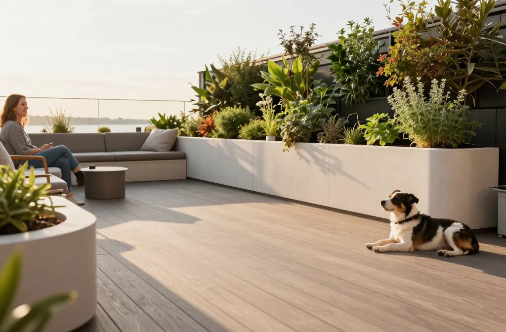 You don’t need a new deck to win. A sturdy, low-slip surface gives your pup room to roam and you to lounge. Think composite boards or sealed wood that cleans up fast after a muddy adventure.