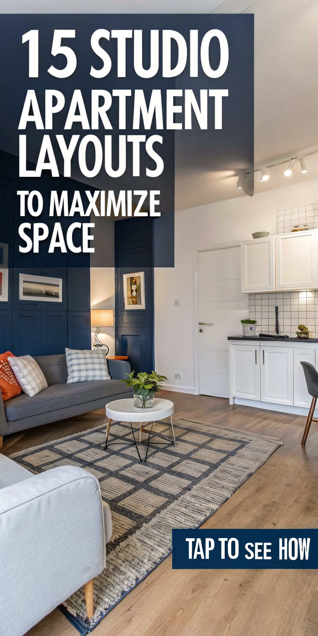 On the living room side, arrange your furniture to face away from the kitchen—sofa against the island-side, TV on the opposite wall. This layout flows naturally and makes cooking feel less like you’re doing it in your bedroom.