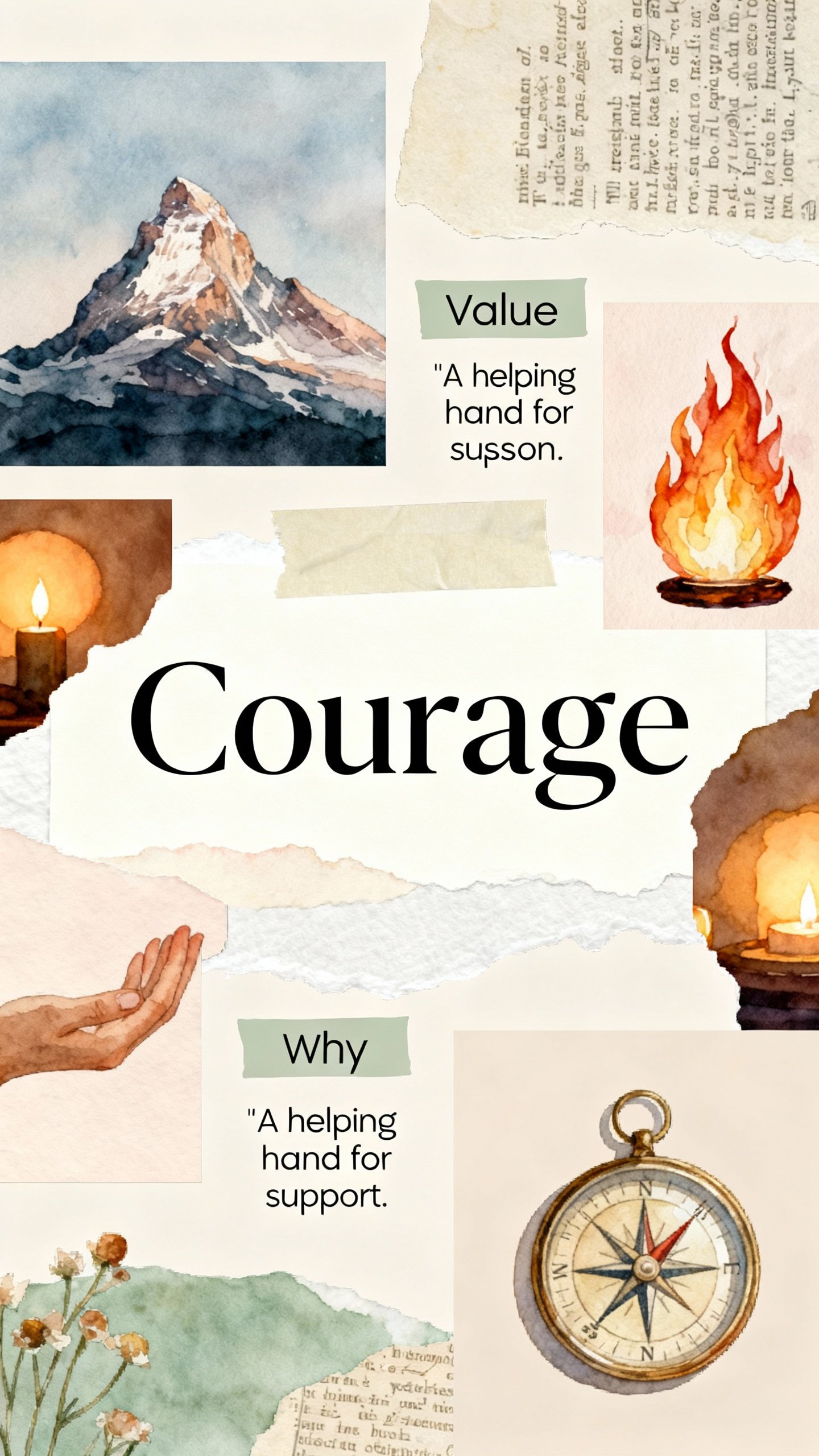- Anchor word/phrase: Choose a theme like “Courage,” “Consistency,” or “Soft Ambition.” Put it dead center.