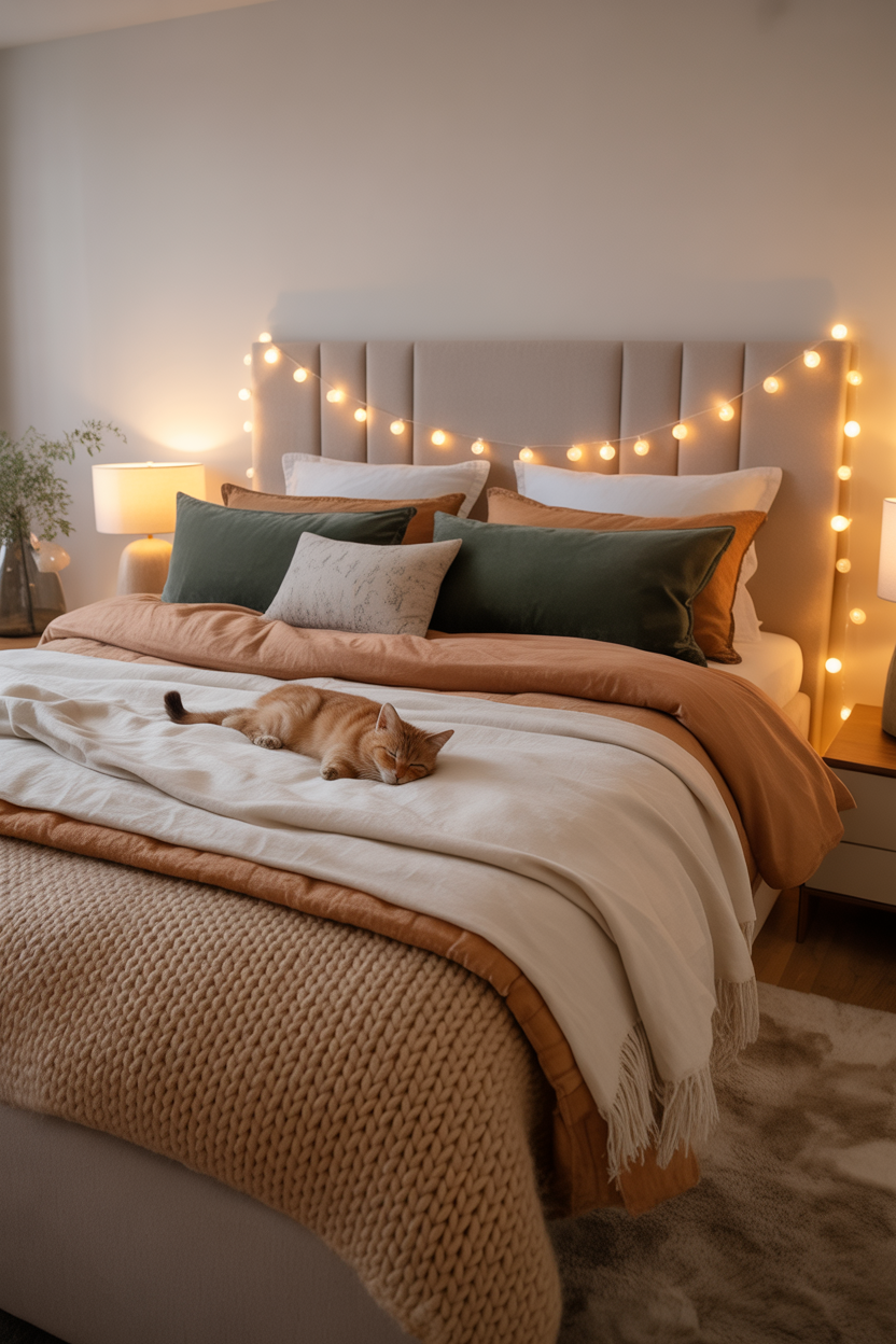 Your bed should be a cloud you sink into. Swap out crisp percale sheets for brushed cotton or flannel, which feel warm to the touch the instant you get in. Add weight to your bedding; a heavier duvet or a weighted blanket can provide a sense of security and improve sleep quality during the colder months. Layer a quilt at the foot of the bed for those extra-frigid nights. The aesthetic should be messy and inviting—a perfectly made bed can feel too stiff for a cozy winter vibe.