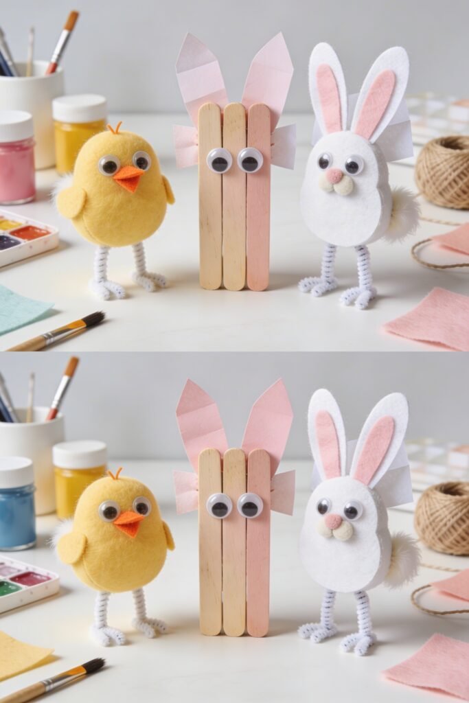 6. Popsicle Stick Chicks & Bunnies