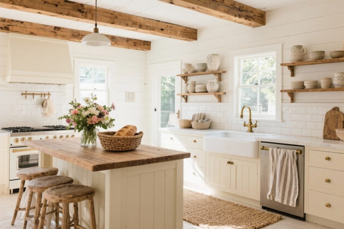 Let’s be honest: the kitchen is where life actually happens. Coffee, conversations, cookies—repeat. If you’ve been craving that cozy, unfussy farmhouse vibe with a softer, calmer energy, you’re in the right place. These ideas are practical, pretty, and totally doable—even if you’re working with a rental or a tight budget. Ready to make your kitchen feel like a warm hug? Let’s do this. 1. Embrace A Cloudy Neutral Palette A soft life starts with a soft palette. Think creamy whites, warm taupes, feather-gray, and muted sage. These tones make your kitchen feel calm without being boring, and they play beautifully…