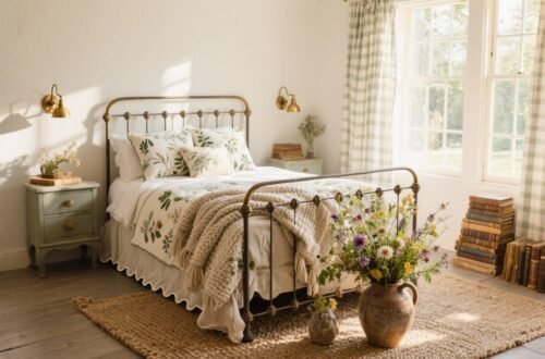 Cottagecore isn’t about perfection; it’s about patina and warmth. Layer materials that feel like they’ve lived a life—no drilling required.