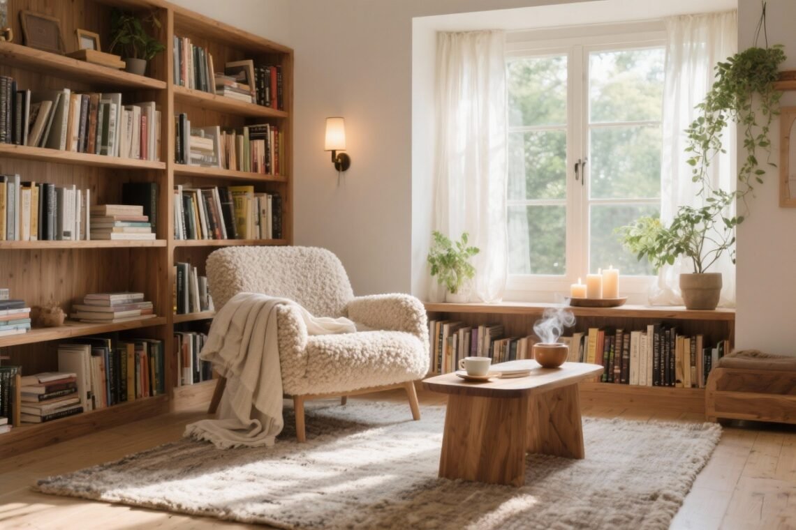 Ready to curl up and get lost? Your hygge nook doesn’t need a huge budget—just a smart chair, layered lighting, texture on repeat, and shelves that make your books feel like art. Brew something warm, slide your phone to Do Not Disturb, and let the cozy take over. Happy reading.