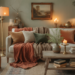 Think warm neutrals with small pops: cream, caramel, terracotta, forest green, and charcoal. Avoid stark white and blue-heavy lights, which feel chilly. Add warmth with wood tones, brass accents, and textured fabrics. A patterned rug or throw can tie it all together.