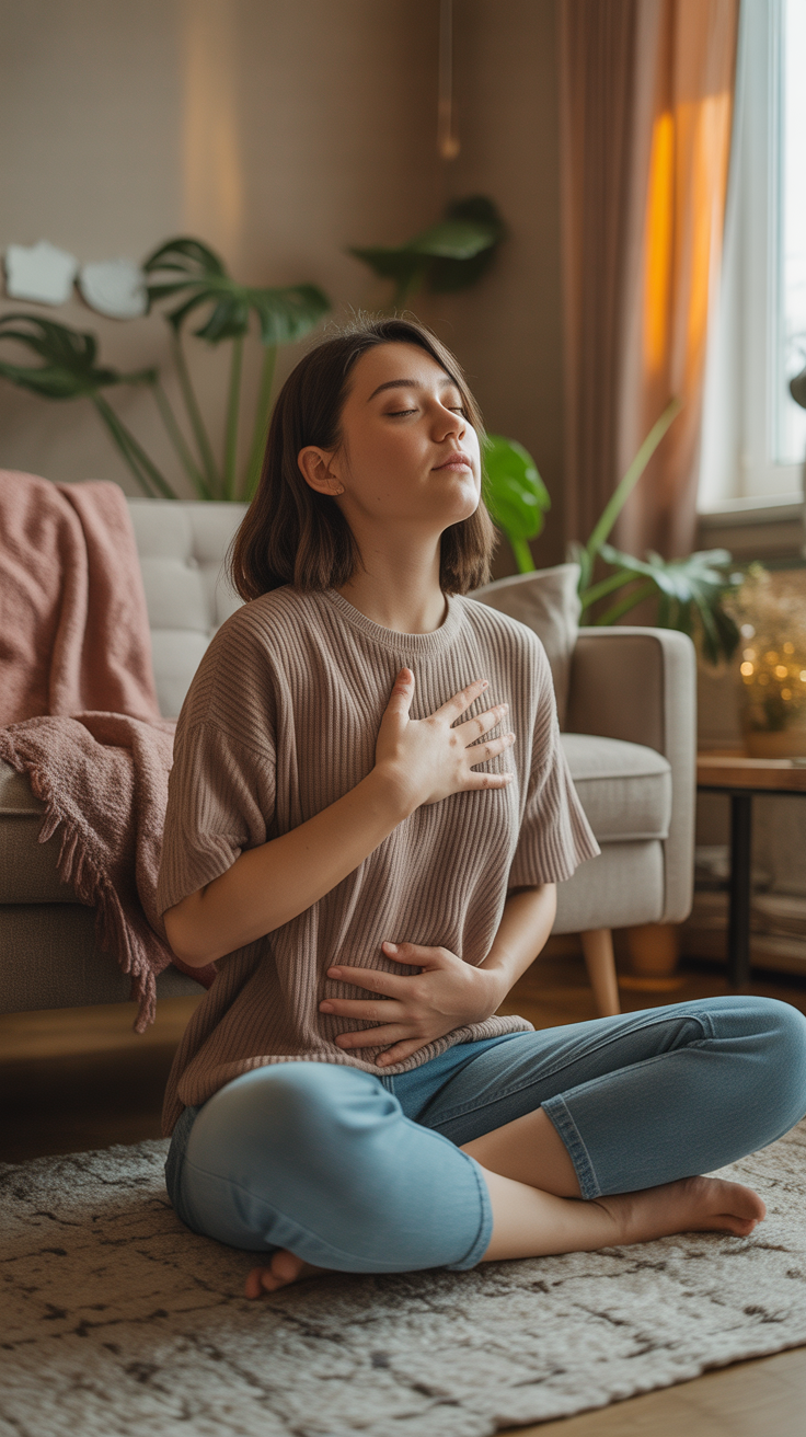 Try physiological sighs: two quick inhales through the nose, one long exhale through the mouth. Do 3–5 rounds. It calms you fast and doesn’t require math.