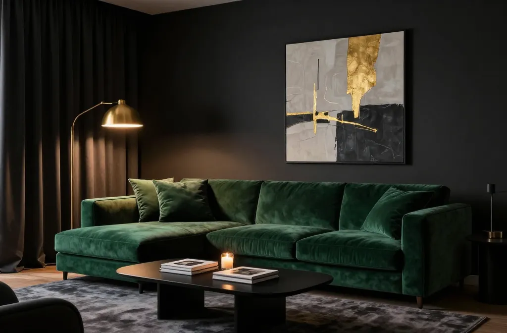 - Texture Play: Velvet, leather, and woven fabrics prevent a flat look.