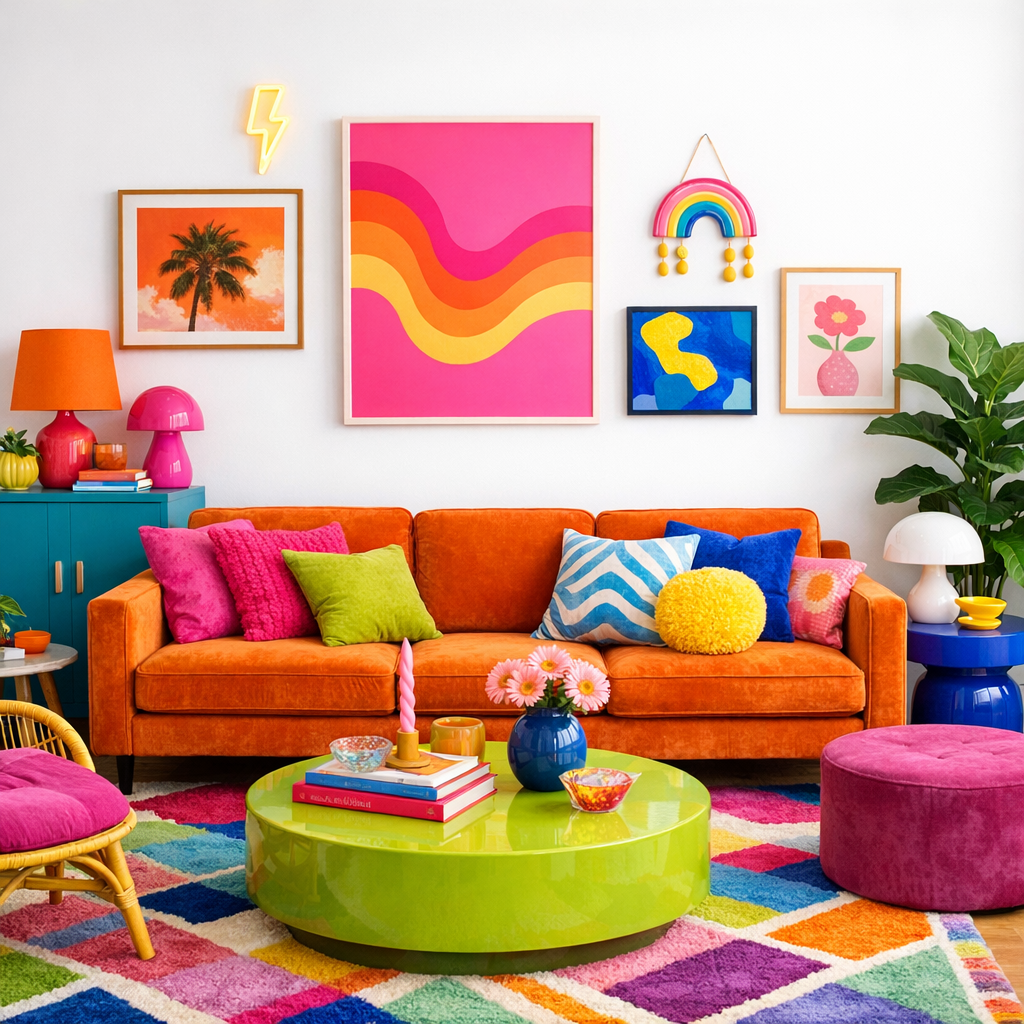 - Natural Elements: Ground the vibrant colors with wood, rattan, or marble. A sleek marble coffee table (Modern) creates a beautiful contrast against a shaggy Moroccan rug (Eclectic).