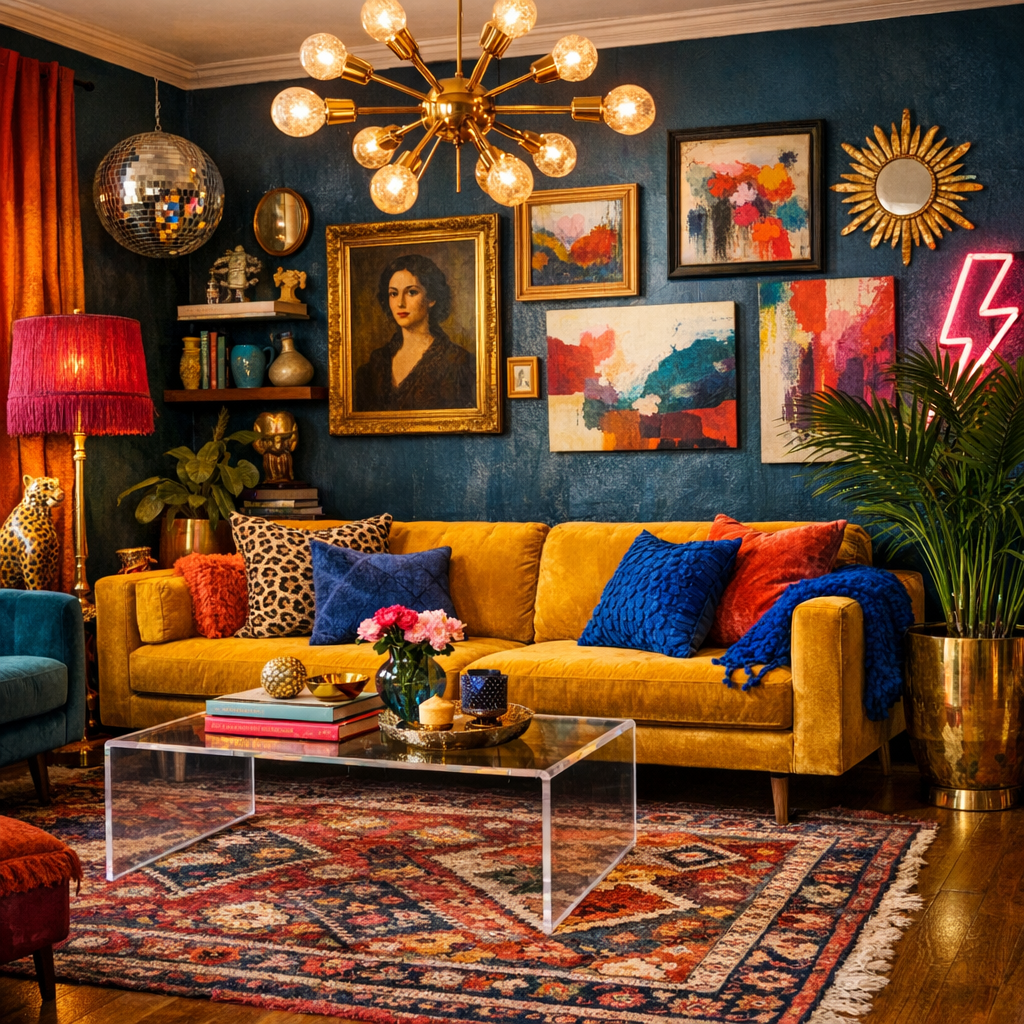- Eclectic: This implies a mix of eras and styles. It is the freedom to pair a mid-century modern credenza with a Moroccan rug and 1970s disco decor.