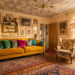 - Art: A gallery wall featuring gold frames, abstract modern art, and a vintage oil portrait.