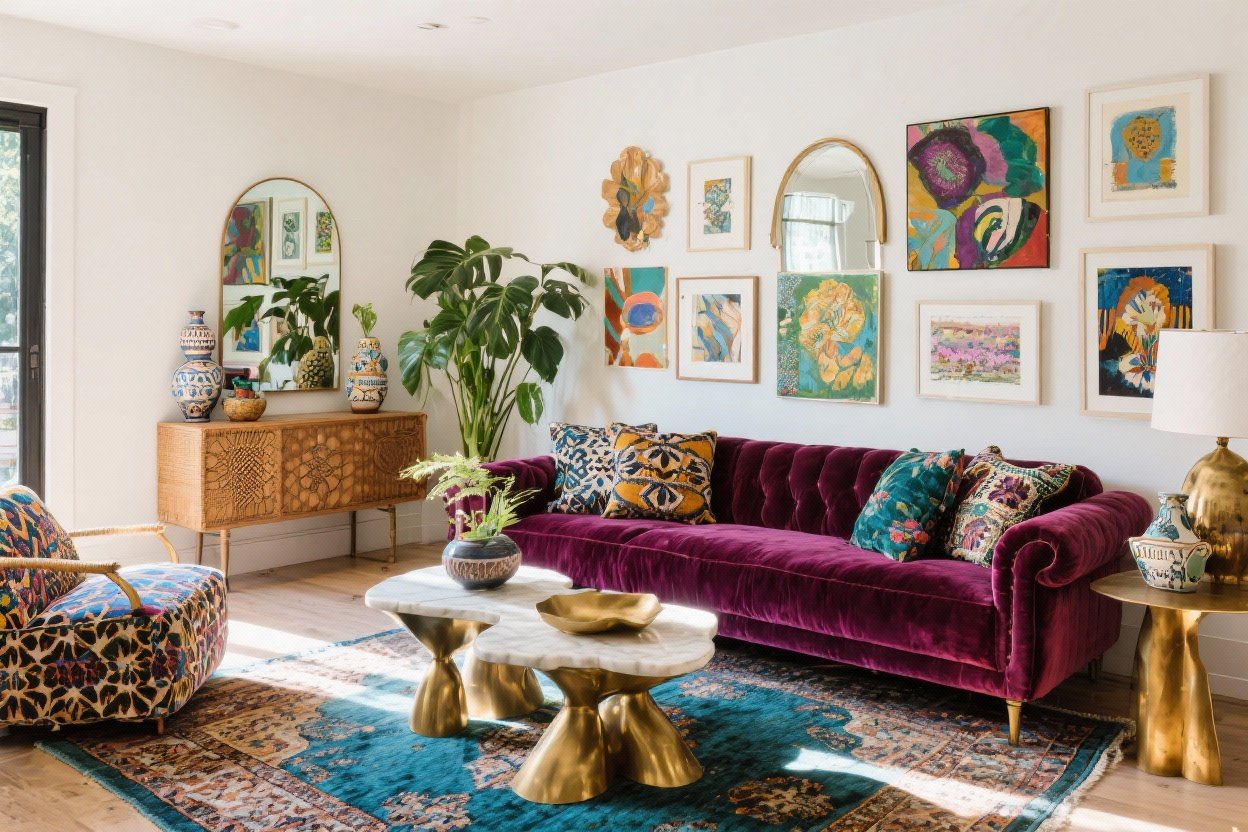 Modern eclectic works best when it feels intentional, not thrown together. Anchor first, layer second, chaos never.