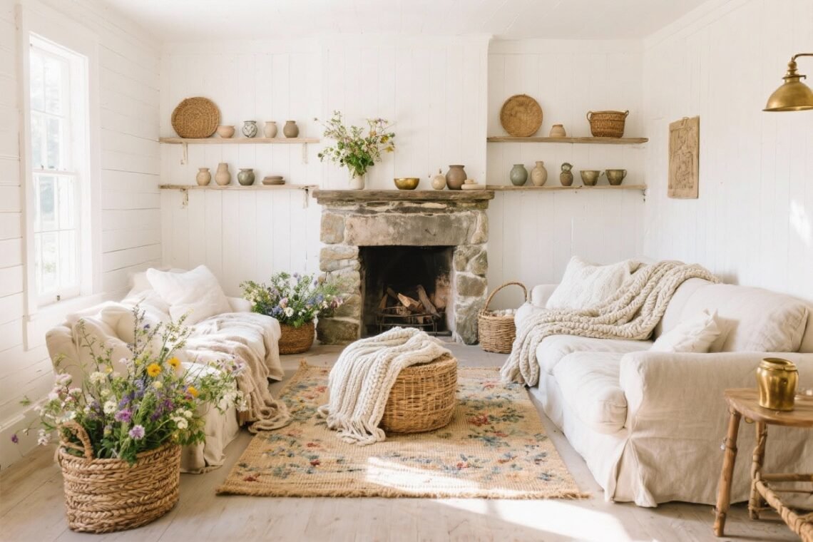 You know that feeling when a room just exudes calm? Like it whispers, “Take your shoes off, make some tea, and chill for a minute.” That’s the sweet spot where cottage core interiors meet slow living—soft textures, honest materials, sunlight doing the most, and zero visual chaos. If your home craves more warmth and less “algorithm-approved minimalism,” you’re in the right place. Here are 12 cozy house aesthetic tweaks that are easy to try, comfy to live with, and guaranteed to make your space feel more grounded. Let’s get you that cottage calm, room by room. 1. Layer Natural Textures…