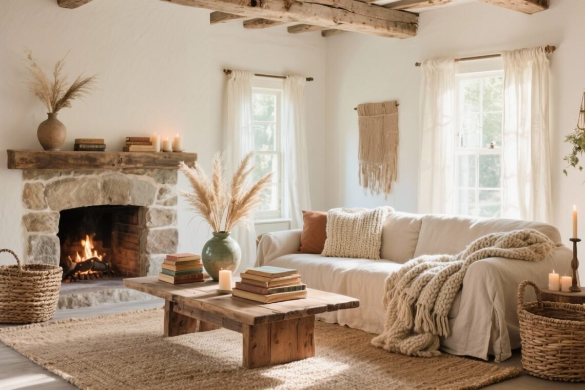 Want your home to feel like a warm hug and a deep breath at the same time? Same. This is your game plan for blending rustic textures, calm neutrals, and that slow-living, “I actually enjoy being here” energy. Think farmhouse meets spa—minus the scented candle headache. 1. Ground Everything With Natural, Matte Materials Start at the base: materials that are tactile, imperfect, and honest. Choose matte finishes and raw textures—they instantly dial down visual noise and add calm. Why It Works Glossy surfaces bounce light in harsh ways; matte textures absorb it. That’s why linen, clay, and unfinished wood feel…