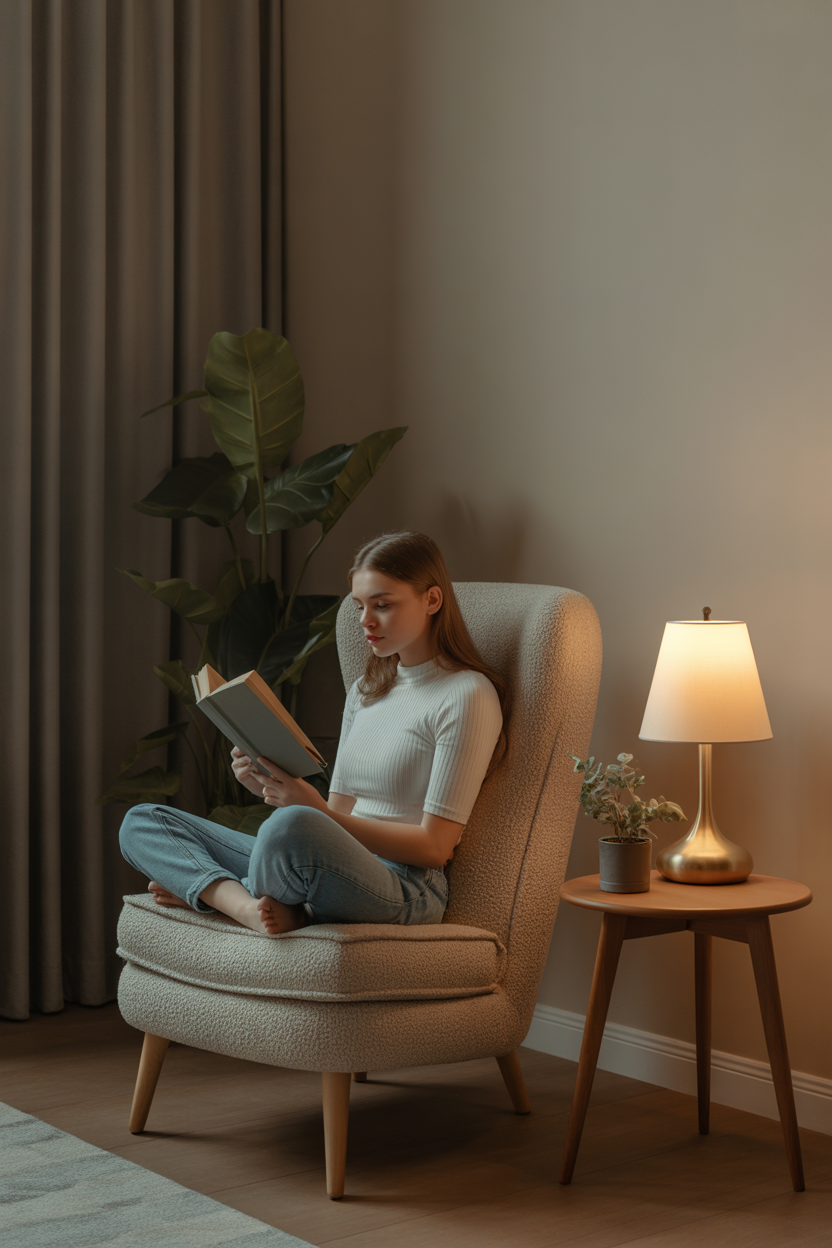 Bad lighting kills reading joy. You want warm, layered light that doesn’t glare. Aim for a lamp that hits the page at an angle from behind your shoulder.