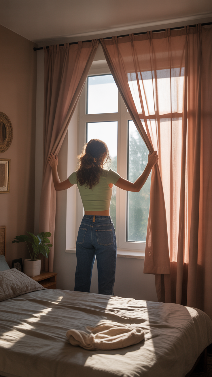 Crack the windows, pull back the curtains, and let actual daylight do what expensive lamps pretend to do. That first rush of fresh air? It wakes up your space and your brain.