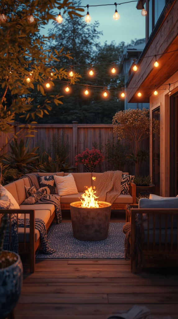 The right lighting — string lights, lanterns, soft solar glows — can turn your space into pure magic at night. Arrange your seating so it encourages both lively conversations and quiet, peaceful moments alone.